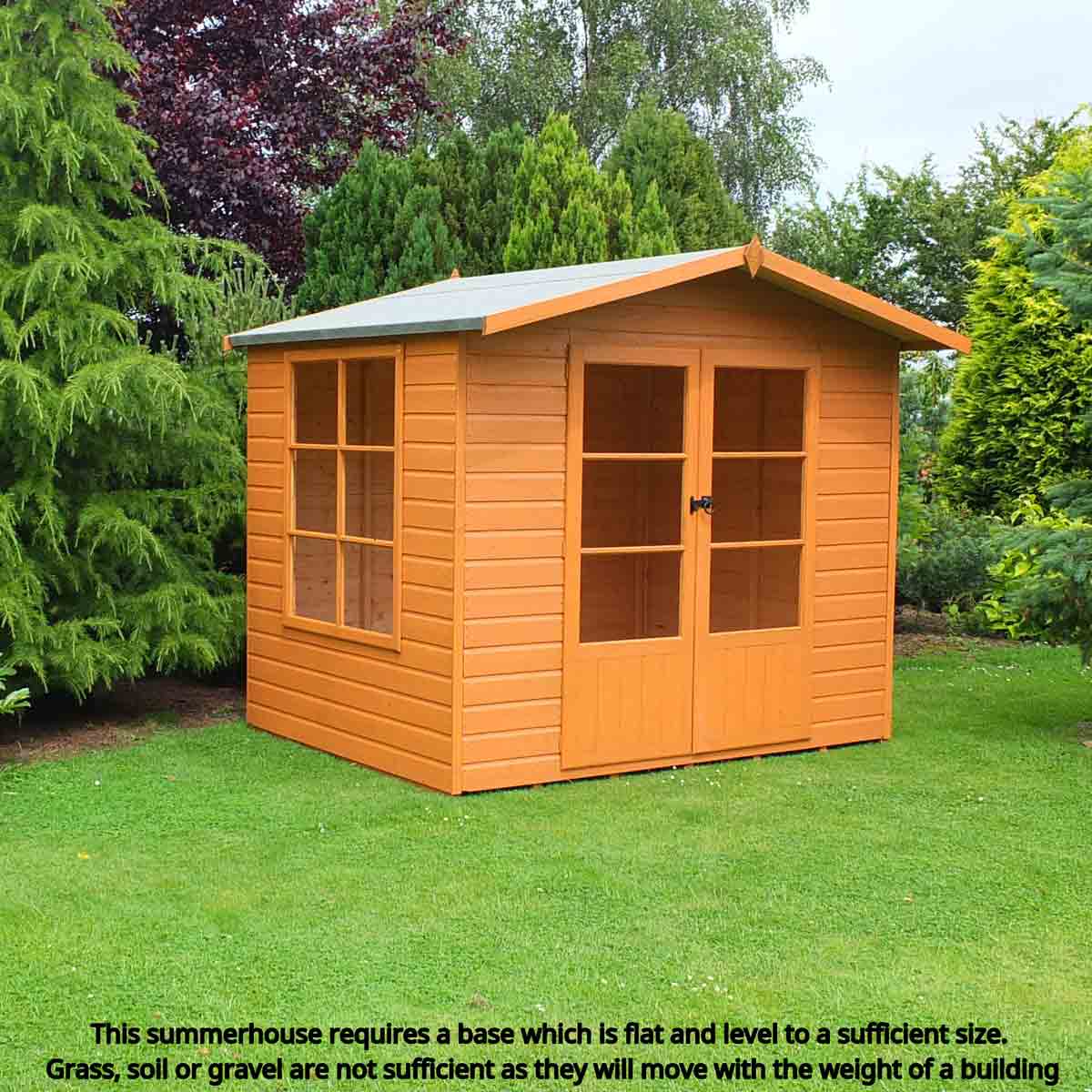 The classic handmade Winton Summerhouse is a perfect choice for all gardens with its attractive design and practicality . The high quality double doors open out to the front and the opening side window can go on either side. The doors feature a classic gate latch and all glazing is glass. It is constructed on 34mm square framing and clad with planed Shiplap tongue and groove boards made only from the highest grade, slow grown, approved, northern European pine with T&G roof and floor. Dipped base coat preservative ready for you to top coat.