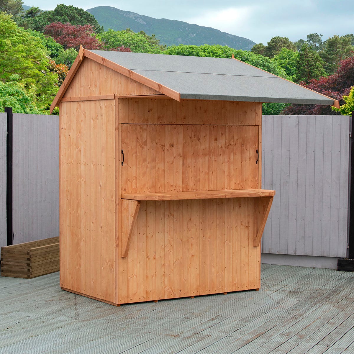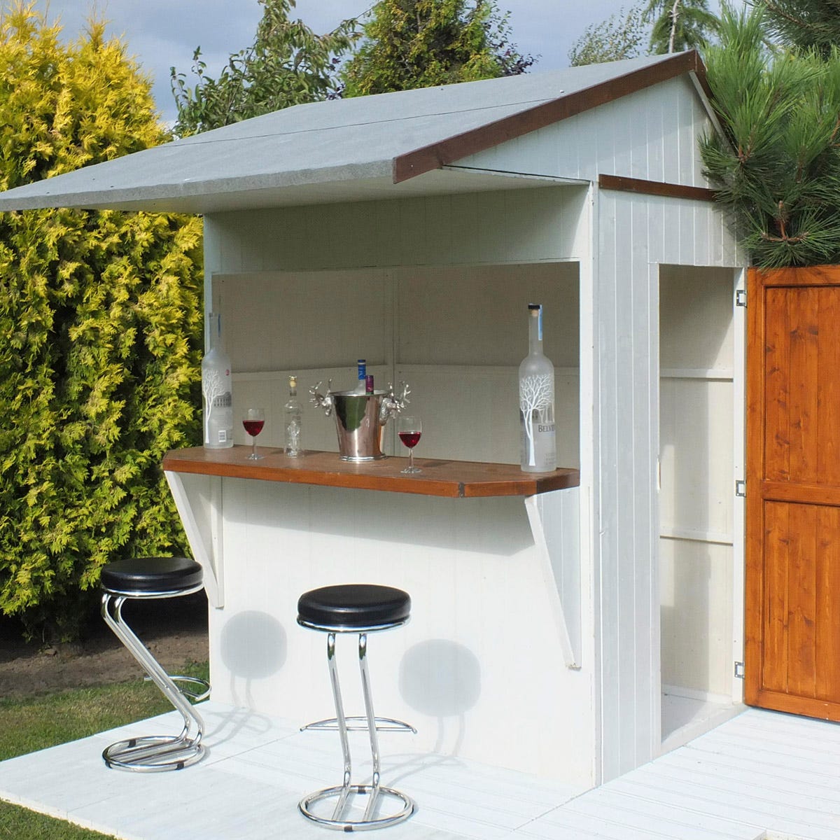 Add some glamour to your outdoor space with this garden bar that perfectly combines style and practicality. Ideal for entertaining guests, this shed can be opened up as an exciting bar space to serve drinks or food. Or in the winter, this bar can be converted into some handy extra storage space.