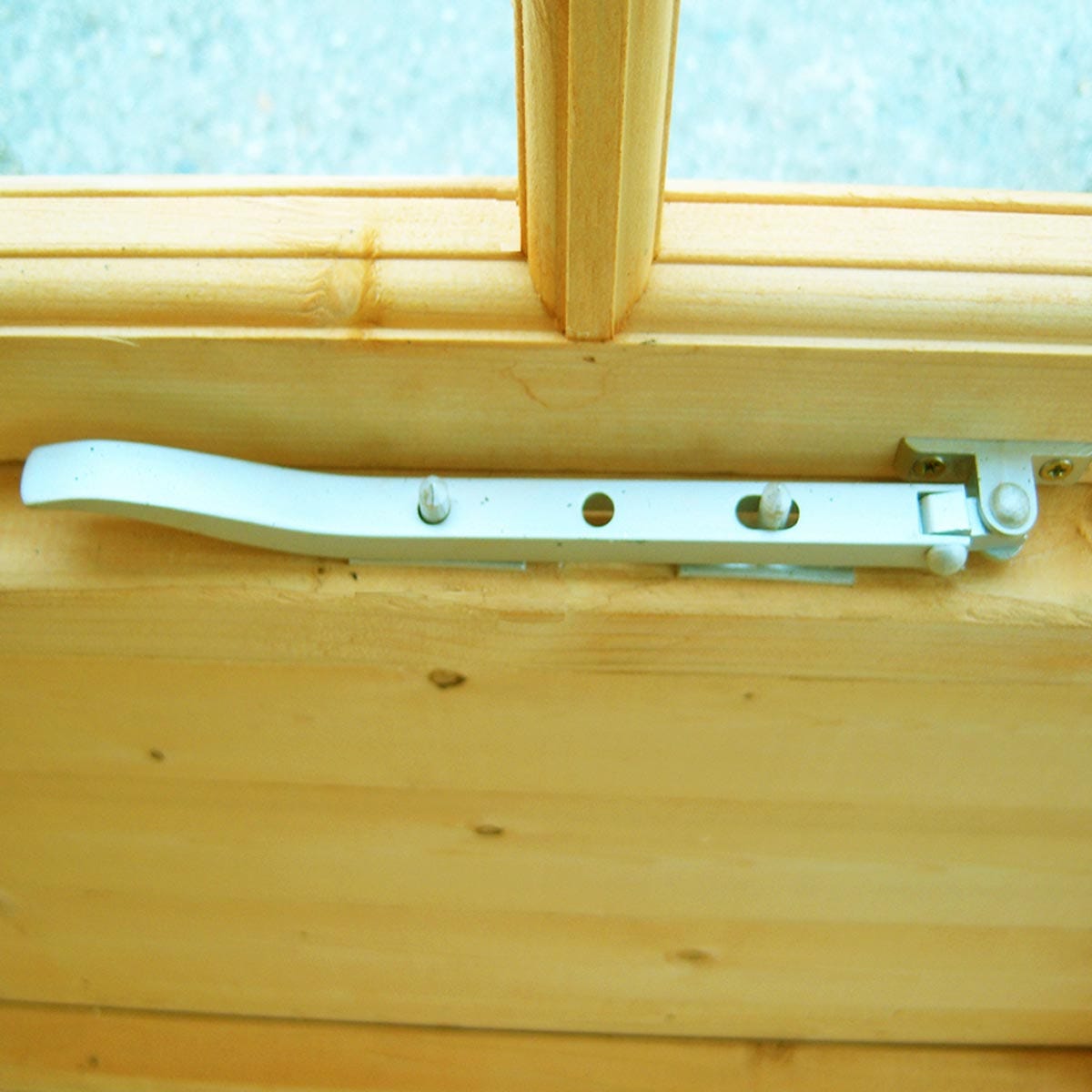 Both roof and floor are of tongued and grooved pine and the floor has close spaced bearers for added support. The two opening windows are storm resistant, joinery quality frames glazed with 3mm glass.