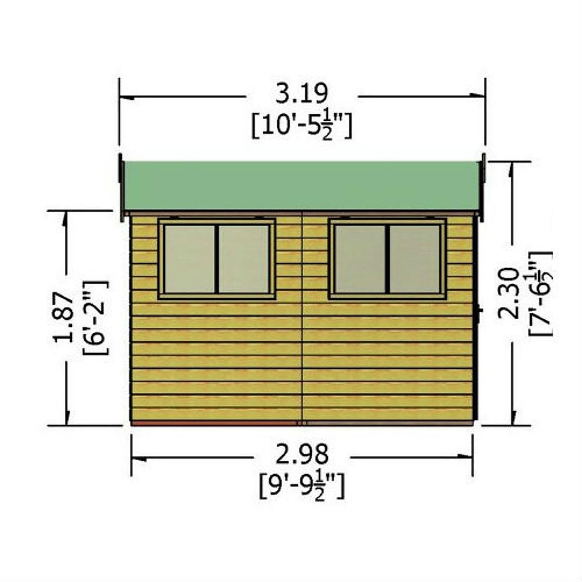 Allowance should be made for the roof overhang and for access around the outside during construction and subsequent treatment (Imperial dimensions are approximate to the nearest foot, please refer to the exact metric dimensions in the data given).