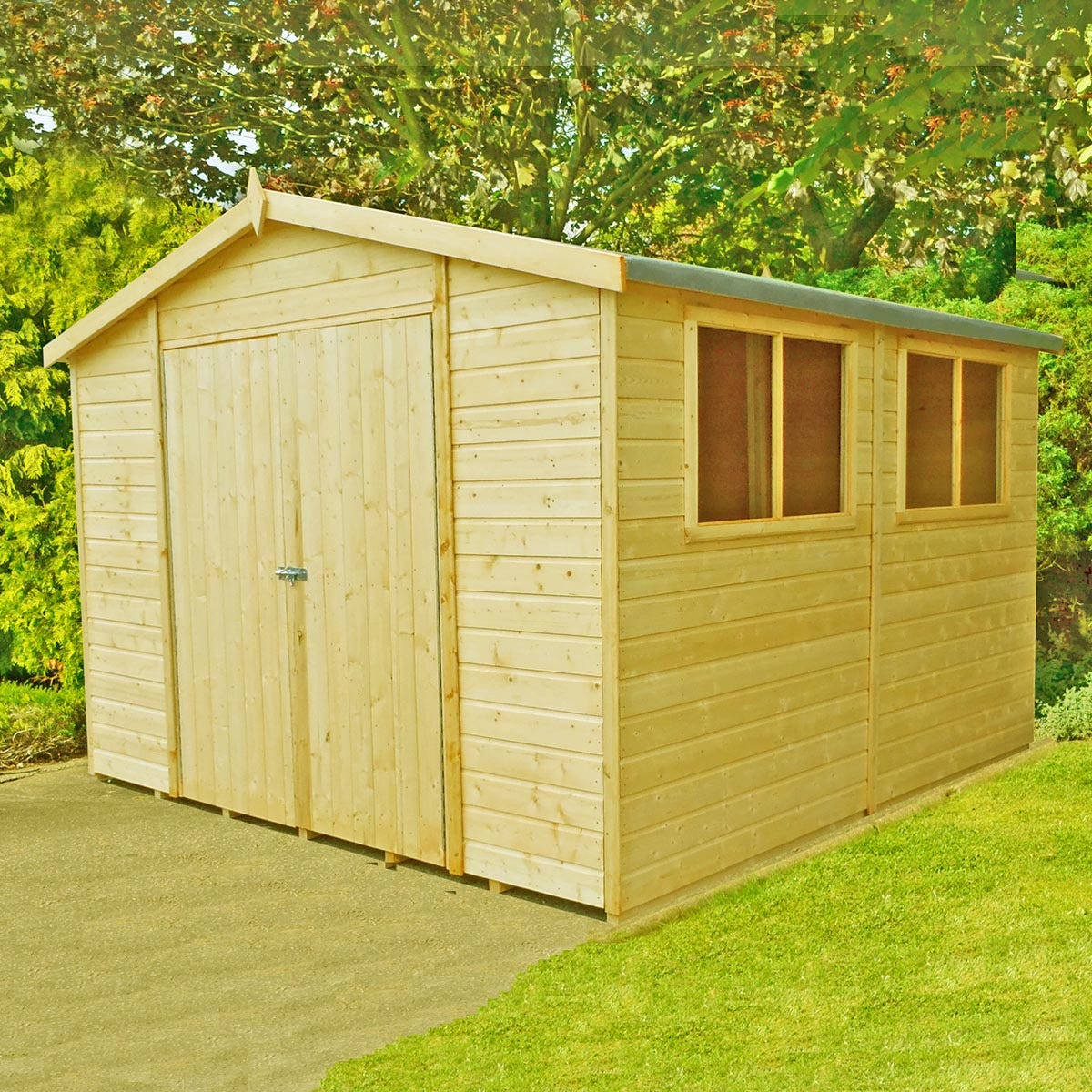 A lock and key are also provided. The high grade 12mm shiplap cladding provides much improved weather proofing and longevity. The internal working height is 6 feet at the eaves making for a really comfortable working environment for the vast majority; again, this is significantly higher than much of the cheaper competition.