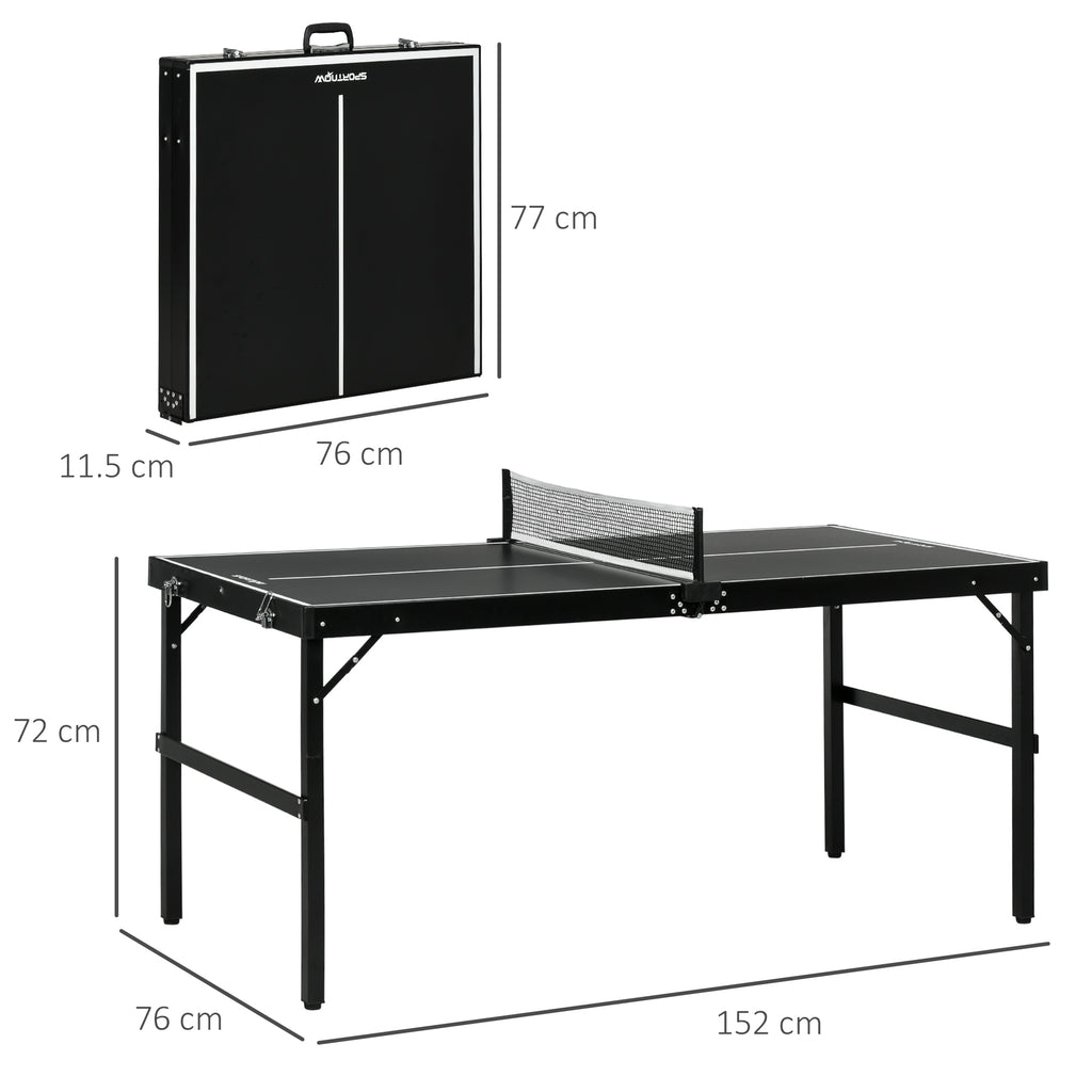 SPORTNOW 5ft Mini Table Tennis Table, Folding Ping Pong Table with Net and Aluminium Frame, Portable Ping Pong Game Set for Indoor Outdoor Use, Black