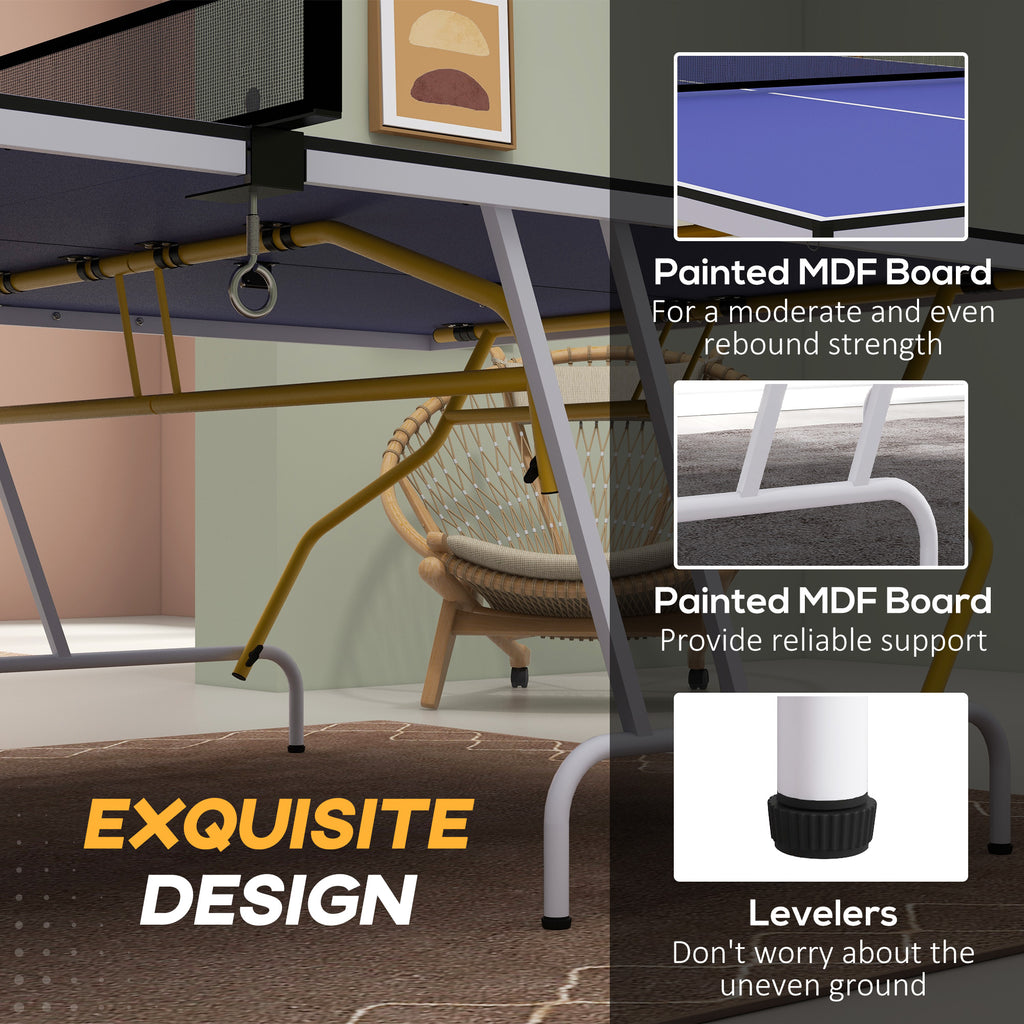 SPORTNOW 9FT Foldable Table Tennis Table, with Cover, Net, Paddles, Balls - Blue