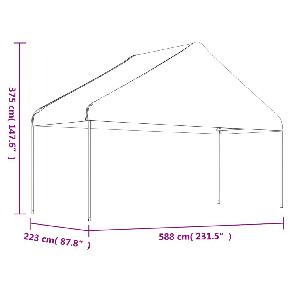 Enhance your outdoor experiences with the vidaXL gazebo, designed for style, durability and versatility. This robust shelter is engineered with a UV-resistant white polyethene roof (PE 160 g/m²) and a rust‐free, galvanised steel frame, ensuring reliable protection for your family gatherings, garden parties or even a relaxing meditation retreat. With generous dimensions of 5.88 x 2.23 x 3.75 m and a 2 m side height, it creates a welcoming and spacious outdoor haven.