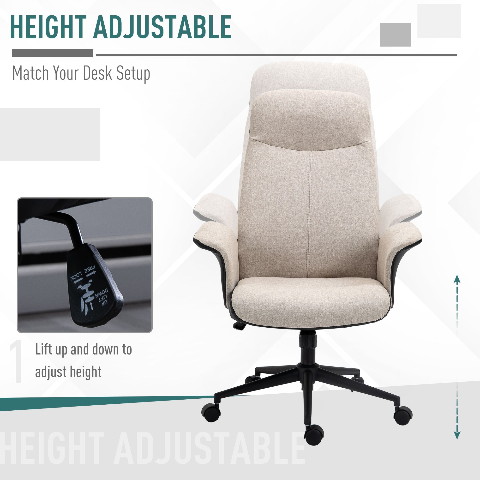 Vinsetto Office Chair, Linen Fabric Desk Chair, Comfortable Computer Chair with Adjustable Height, Padded Armrests and Swivel Wheels, Beige